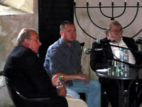 | Besedu s dramatikem, spisovatelem a od roku 1992 i pražským a zemským rabínem Karolem Sidonem (hebrejským jménem Efraim ben Alexander) moderuje David Hrbek. |