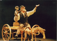 Představení získalo v roce 2001 jednu z hlavních cen na světovém festivalu loutkářů v Łódźi a čestné uznání za strhující herecký výkon na festivalu Skupova Plzeň 2004. Dílem protagonisty je i scénografie, sám si navrhl a vyrobil loutky. A nejsou to loutky ledajaké, typově kombinují maňásky se samostojnými manekýny, technologicky se i liší, např. jedna má dvě tváře – veselou a pochmurnou. Vrcholem je pak loutka koníka, kterého v postraňkách mlékař zapřahá do svého vozíku. Martinka skvěle kombinuje vyprávění se vstupem do dramatických situací, perfektně zpívá, dokonale animuje loutky a neuvěřitelně přirozeně pracuje s playbackovými nahrávkami replik jejich postav. Užívá ostré přechody nálad mezi radostí a smutkem, nadšením a zoufalstvím, optimismem a skepsí, to vše v dokonalém kontaktu s publikem, kterému už ani nepřipomíná, že jsou to jeho spolucestující. Petr Pavlovský, Loutkář 4/2004 |
